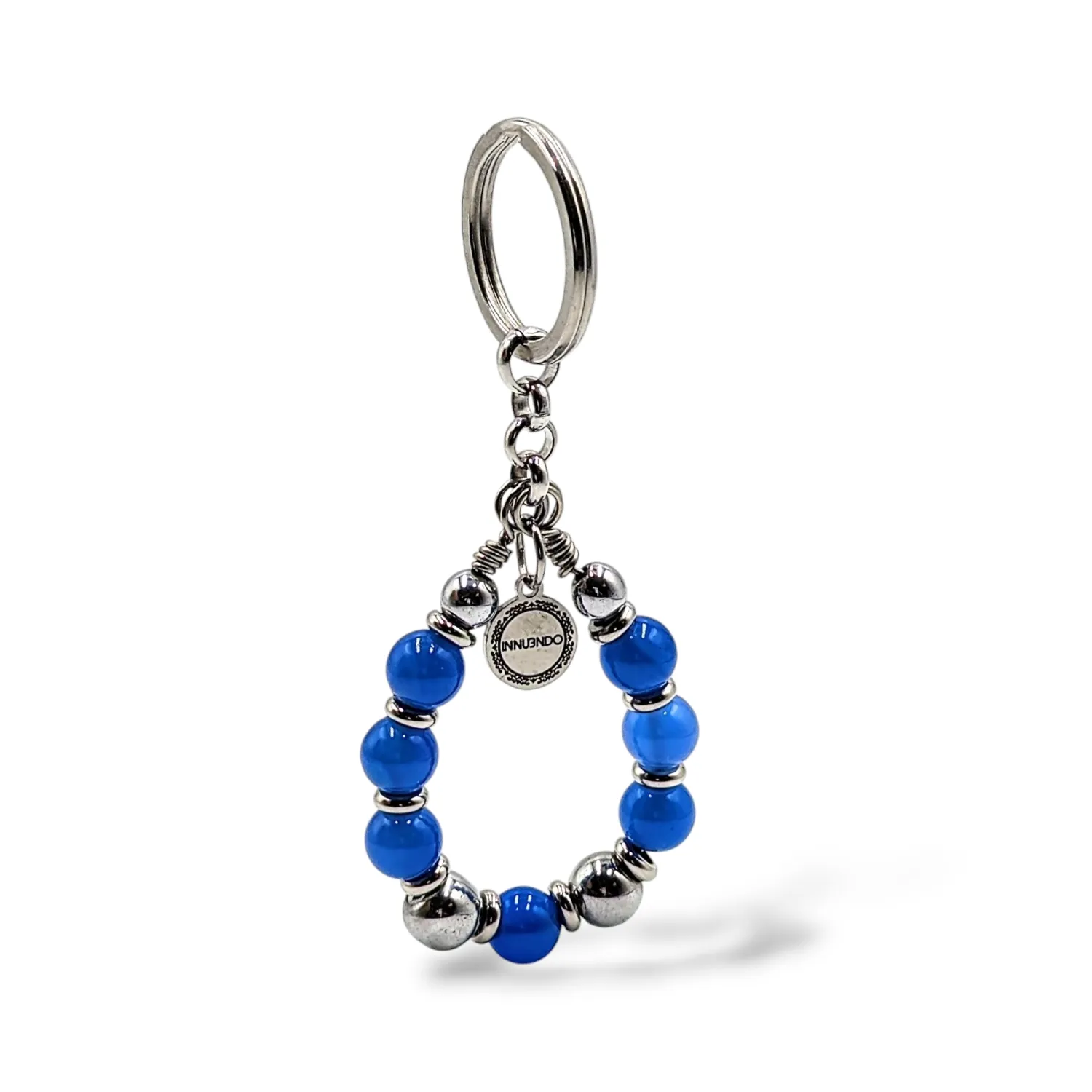 Il portachiavi Ares – Onice/Ematite unisce il nero profondo dell’Onice naturale alla brillantezza dell’Ematite. Le pietre vengono inserite in un resistente filo d’acciaio e completate con inserti metallici per un look pulito e moderno. Fatto a mano, è un accessorio ideale per chi cerca minimalismo ed eleganza.